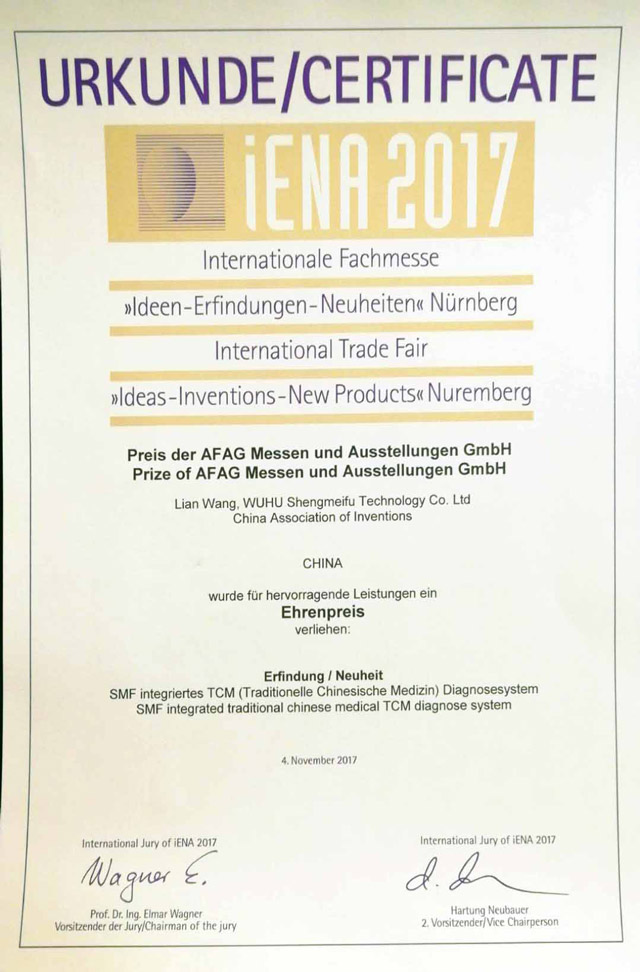 公司于2011年獲得國家科技部頒發(fā)的中小型科技創(chuàng)新基金;同年5月榮獲產(chǎn)品注冊(cè)證,填補(bǔ)了國內(nèi)中醫(yī)診斷設(shè)備的空白。
