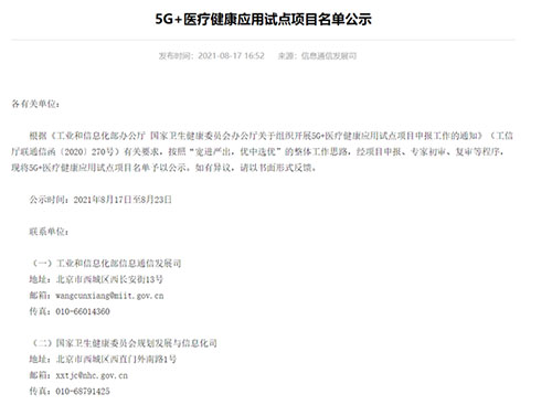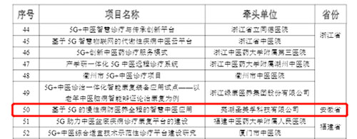 8月17日,中華人民共和國(guó)工業(yè)和信息化部官方網(wǎng)站發(fā)布了“5G+醫(yī)療健康應(yīng)用試點(diǎn)項(xiàng)目名單”,由蕪湖圣美孚科技有限公司牽頭,聯(lián)合蕪湖市中醫(yī)醫(yī)院、蕪湖市高科電子有限公司、安徽中醫(yī)藥高等?茖W(xué)校、中國(guó)電信股份有限公司蕪湖分公司、天津理工大學(xué)五家單位共同申報(bào)的《基于5G的慢性病防醫(yī)養(yǎng)全程的智慧中醫(yī)應(yīng)用》項(xiàng)目成功入選此次應(yīng)用試點(diǎn)項(xiàng)目名單,也是安徽省入選“5G+中醫(yī)診療”方向名單的項(xiàng)目。